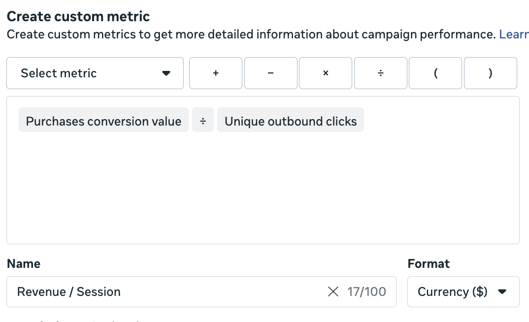 Revenue per session is useful, and perhaps the easiest one to spit out because you can do this in Meta without any contribution margin calculations.