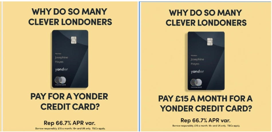We wanted to see if “Pay” outperformed “pay £15” (or other variations). The specific message outperform generic, every time.